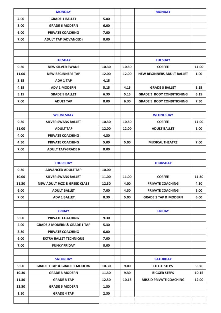 Our Current Timetable